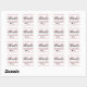Os adesivos agradecidos apresentam faixas brancas e horizontais com texto de script "Obrigados" preto e texto personalizado elegante que pode ser personalizado com uma mensagem e um nome personalizados. Perfeito para aumentar suas vendas. A cor de fundo rosa do balé pastel pode ser personalizada.