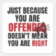 Um adesivo minimalista com a citação "Só porque você é ofendido não significa que você está certo." Perfeito para laptop, cadernos e garrafas d'água. presente de excelente para fãs de sarcasmo, humor e declarações ousadas.
