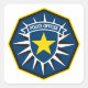 Logotipo grande da polícia azul, amarela, branca e negra, com estrela pontiaguda e texto do POLICIAL OFFICER. Camisas e presentes do agente de polícia