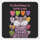 Adesivo Quadrado Olhos Verdes De Gato Roxo Corações Doces Com Ditos