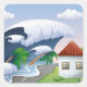 Uma onda de tsunami prestes a lavar uma casa. Esta design parece realmente eficaz nestes adesivos