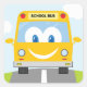 Um ônibus escolar com um rosto sorridente. Esta design parece realmente eficaz nestes adesivos