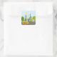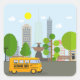 Um ônibus escolar com a cidade ao fundo. Esta design parece realmente eficaz nestes adesivos