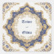 Sele seu dia especial com este adesivo de casamento verdadeiramente opulento e majestoso, um design que imediatamente evoca a grandiosidade real. O centro é uma complexa moldura de explosão de estrelas de múltiplos pontos que combina dramaticamente azul real profundo com extenso relevo em dourado falso cintilante. As seções azuis apresentam um delicado padrão de damasco floral espalhado, contrastando lindamente com a elaborada filigrana Barroca e Vitoriana dourada que emoldura toda a forma. A moldura central e os cantos externos são destacados por rolos de folhas de acanto dourados ousados e motivos florais azuis e dourados em camadas, dando ao adesivo uma qualidade tridimensional impressionante. O fundo branco macio e texturizado garante que o azul escuro e o dourado se destaquem dramaticamente. Este selo suntuoso é o toque final perfeito para um casamento formal em uma propriedade, uma recepção de gala de inverno ou qualquer evento com tema régio, adicionando um glamour sofisticado e atemporal aos selos de envelope, caixas de lembranças ou bolsas de boas-vindas. Seu uso versátil para outros negócios, eventos ou situações o torna uma escolha excepcional