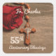 Um crucifixo rosário de madeira é visto próximo a uma bela rosa vermelha. Um belo presente, lembrança, doação ou festa essencial para celebrar com um padre no seu 55º aniversário da Portaria. Personalize o nome.