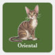 O adesivo oriental captura a elegância da raça gata oriental, celebrada pelo seu corpo elegante, orelhas grandes e olhos em forma de amêndoa. Este adesivo é perfeito para entusiastas de gatos, mostrando a silhueta graciosa e esbelta do gato oriental em uma na moda e design artística