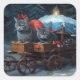 Adesivo Quadrado Oriental Blue Cat Snowy Sleigh Decência de Natal