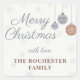 Este adesivo quadrado na moda de Natal bonito e moderno apresenta um fundo branco macio e cremoso com Enfeites de natal suspensos em cores neutras e um padrão bonito de floco de neve. Personalize com seu nome para um toque personalizado. Perfeito como selo de envelope para cartões de Natal ou Convites de festas de Natal ou como um favor de festa numa festa de Natal.