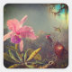 Adesivo Quadrado Orquídea de Cattleya e três beija-flores