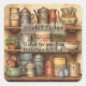 Imagem bonito de uma prateleira de cozinha antiga, com recipientes, tigelas e latas cheias de ingredientes para cozinhar. Fazer Yummy trata todos este feriado? Personalize o texto a ser usado para Doces de Natal, Emperramento, Cones, Brownies, Açucar Cookies ou qualquer que seja a sua receita favorita para os feriados.