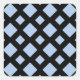 Um padrão na moda, geométrico de grandes e pequenos diamantes azuis claros sobre fundo preto. O preto forma uma trava que separa as formas de diamante azul do bebê. Imagem de pixel 9000 x 6000 criada digitalmente. ©2014 Claire E. Skinner, Todos os direitos reservados.