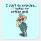 Mildred é uma senhora idosa cabeleira de cinzas com algumas opiniões fortes bonito! Nessa design de exercício engraçado, ela diz: "Eu não faço exercício...faz o meu derramar de café." Tema humorístico de exercícios T-shirts, canecas, bolsas, cartões, autocolantes, ímanes, chaveiros, ornamentos, e mais, com certeza para que você e os outros se divirtam!