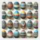 Arte de decoração de ovos com padrões intrincados inspirados em culturas em todo o mundo. Cada ovo ostenta uma design única, de modos tribais a geométricos modernos, em uma rica paleta de tons de terra e sotaques vibrantes. Ideal para uma celebração mundana de Páscoas ou como uma bela demonstração de unidade e diversidade em sua casa.