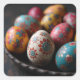 Adesivo Quadrado Ovos de Páscoa Pintados em uma Tigela Rústica
