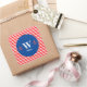 Design de ancoragem náutica clássica sobre o círculo azul com os padrões de listras brancas e vermelhas no fundo. Ele tem texto personalizável e monograma no centro, que pode ser alterado para sua preferência. Verifique a minha coleção para itens correspondentes.