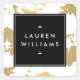 Coordena-se com o Padrão Dourado Elegante sobre o Modelo de cartão de negócios White II até 1201AM. Um padrão floral típico de vintage em ouro falso torna-se um pano de fundo elegante neste adesivo personalizado glamouroso. A caixa preta simples exibe seu nome ou nome comercial em um estilo clássico. Use estes adesivos para adicionar sua marca à embalagem, selar envelopes, personalizar material de escritório e muito mais. Este produto faz parte de uma série de material de escritório para ajudar a marca da sua empresa. Arte e design © 1201AM Design Studio | www.1201am.com