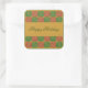 Adesivo Quadrado Padrão Vermelho e Verde de Feriado Personalizado