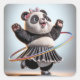 Um panda alegre vestindo um arco e flores gira um aro de hula colorido do arco-íris enquanto veste uma pequena saia e calçados de sela.