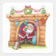 Adesivo Quadrado Papai Noel Alegre Desenhado Descendo a Chaminé