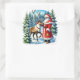 Adesivo Quadrado Papai Noel e Reindeer em uma Floresta Neve