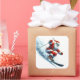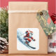 Adesivo Quadrado Papai Noel esquiando em uma montanha nevada