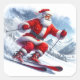 Adesivo Quadrado Papai Noel esquiando em uma montanha nevada