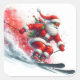 Adesivo Quadrado Papai Noel esquiando em uma montanha nevada