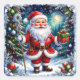 Adesivo Quadrado Papai Noel segurando um presente num Natal Mágico