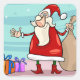 Papais noeis sentados ao lado de alguns presentes e segurando um saco. Esta design parece realmente eficaz nestes adesivos