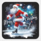 Adesivo Quadrado Papais noeis De Ice Patinando Sob O Fundo Da Lua E