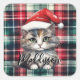 Adesivo Quadrado Papais noeis de Xadrez de Natal Gato com Nome
