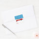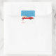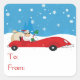 Este adesivo apresenta um Papai Noel dirigindo um grande conversível vermelho na neve e os textos "para" e "de" para serem usados como etiqueta de presente.
