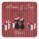 Adesivo Quadrado papais noeis engraçados brancos, casal de gato per