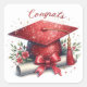 Parabéns Floral Vermelho Selo de Envelope de Chapéu de Formatura e Diploma