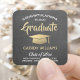 Adicione um toque personalizado aos anúncios de graduação da faculdade ou do segundo grau e aos convites com esses adesivos personalizados preto, branco e quadrado dourado / selos de envelopes. Todo texto é simples de personalizar. A design apresenta um fundo de quadro negro de falso cinza, boné de formatura de aparência de folha de ouro, tipografia na moda moderna e caligrafia de script escrita à mão. Observe que o ouro é impresso a cor, não a folha metálica. Faz uma adição elegante a favores e decorações de festas de formatura. Parabéns ao formando!