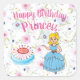 Adicione um toque real aos seus favoritos para festas com este adesivo quadrado temido pela princesa! Apresentando uma princesa encantadora com um vestido azul, um belo bolo fosco em azul e branco, e um fundo floral macio, é perfeito para selar bolsas de presentes, caixas de presentes ou adicionar um doce detalhe à decoração da festa.