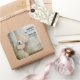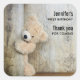 Obrigado de aniversário, você cola com uma fotografia de querido de um urso pelado fofo, parado por uma parede rustica de madeira / pano de fundo.