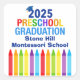 Estes bonitos adesivos de festa de formatura pré-escolar de 2025 apresentam um boné de formando legal acima do escrevendo colorido e uma fileira de lápis de lápis no arco-íris. Vestido adesivo do formando PréK em cores divertidas pelo último dia do ensino fundamental. Parabéns para nossos formandos pré-K!