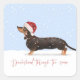 Que fofo! Esta design apresenta um cão Dachshund castanho e preto num chapéu de Papai Noel, na neve, e o sentimento 'Dachshund através da neve' numa caligrafia vermelha festiva, alugada à mão moderna. Perfeito para envelopes, presentes, embrulho, quase tudo!