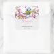 Os autocolantes de negócios com uma fotografia incrível do pássaro mais bonito empoleirado em um galho coberto de flores cor-de-rosa e folhas verdes. O pássaro tem uma cabeça azul e corpo amarelo com um rosto muito doce. Adorável.