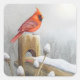 Adesivo Quadrado Pássaro Cardinho Norte Vermelho na Arte de Aquarel
