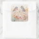 Adesivo Quadrado Pássaros amantes de aquarela com rosas para casame
