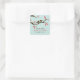 Primavera ou natureza, os autocolantes de casamento ou as etiquetas de favores apresentam duas silhuetas de aves marrons tocadas num membro da árvore com pêssego ou folhas rosa sobre um belo fundo azul aqua. Visite nossa loja para obter produtos correspondentes. Bloqueado