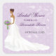 Uma noiva caminha serenamente pelo corredor neste lindo adesivo de chá de panela. O fundo é um bonito padrão roxo úmido sobreposto com videiras florais sujas, enquanto o buquê e os brincos da noiva combinam com o roxo. Disponível em cores alternativas com produtos e opções correspondentes para diferentes etnias de noivas. Entre em contato com esta loja para personalizar este adesivo para cores de marca específicas. com