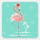 Na moda design com um toque retrorreflector com um flamingo rosa festivo vestindo um chapéu vermelho de Papai Noel, estrelas e palmeiras decoradas com bolhas colocadas sobre um fundo aqua. Um design personalizável para você personalizar com seu próprio texto, imagens e ideias. Uma imagem de arte digital original criada por Quirky Chic.