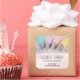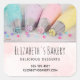 Etiquetas de negócios com uma fotografia bonito de cor pastel. Apresentando artigos decorativos em azul pastel, rosa, pêssego e amarelo. Colocada sobre uma mesa de madeira com pequenas miçangas coloridas. Seu texto personalizado escrito sobre um fundo de aquarela cor-de-rosa.