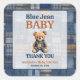 Celebrate the arrival of a little cowboy with this Blue Jean Baby Shower Square Sticker! This charming design features a patchwork denim teddy bear, perfect for a rustic or western-themed baby shower. The classic blue jean aesthetic adds a trendy and gender-neutral touch, making it ideal for celebrating a baby boy. Customize the details effortlessly to create the perfect theme for your special event.