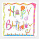 O adesivo Feliz de Aniversário apresenta arte branca desenhada à mão usando balões, cupcake e bolo de aniversário para ajudar a formar as letras. As palavras de aniversário feliz estão cercadas por uma fronteira desajeitada.