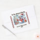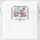 Um belo adesivo quadrado com um sorridente boneco de neve, cercado por árvores de neve e presentes festivos. Perfeitamente concebido para acrescentar um toque pessoal aos pacotes de férias, reflete o calor e a alegria das celebrações de Natal com a família e os amigos.