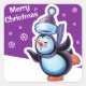 Adesivo Quadrado Pau púrpura de Natal patinando pinguim.